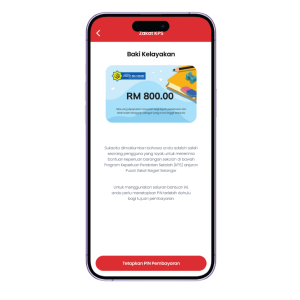 Langkah 1 Pada halaman utama aplikasi Nine, tekan pada banner Program Bantuan Keperluan Sekolah atau ikon Lembaga Zakat Selangor Langkah 2 Halaman tentang Program Bantuan Keperluan Sekolah akan dibuka. Tekan “Mulakan” untuk mengaktifkan poket program Zakat KPS Langkah 3 Platform akan mengesahkan kelayakan anda sebagai penerima bantuan Program Zakat KPS.Untuk mula menggunakan nilai kelayakan, anda perlu menetapkan PIN penebusan terlebih dahulu Langkah 4 Tetapkan PIN Penebusan sebagai ciri keselamatan untuk membuat transaksi penebusan di kedai Langkah 5 Setelah selesai, anda sudah boleh membuat penebusan dengan menekan butang “Penebusan” dan menggunakan ciri-ciri yang lain Kembali