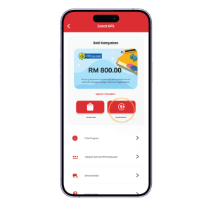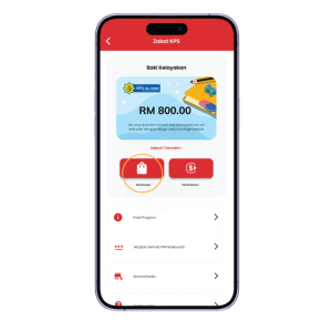 Pada halaman Program Zakat KPS, tekan pada butang “Penebusan”