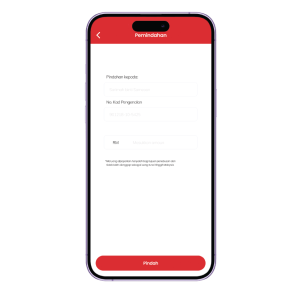 Butiran penerima akan dipaparkan. Pemindahan hanya boleh dibuat kepada penerima yang telah ditetapkan sahaja. Tekan “Pindah” untuk meneruskan proses